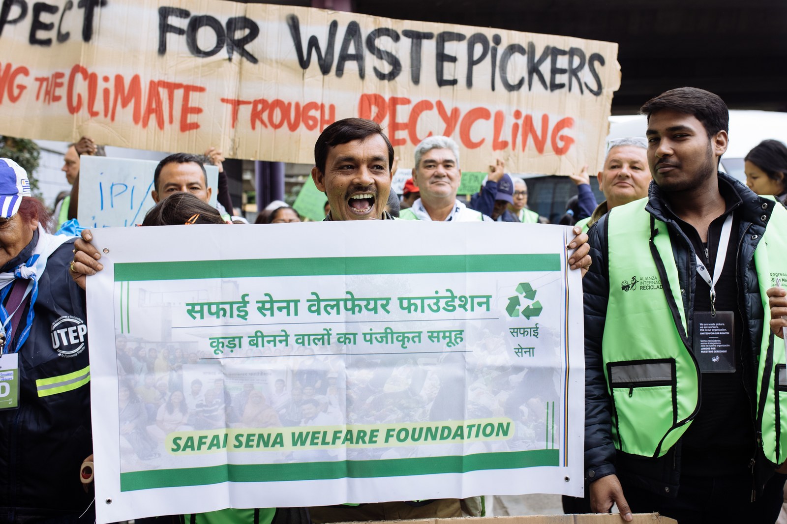 Defendemos a dignidade da coleta, pilar da reciclagem, o receptor organizado nunca será pisado. Eles foram outros slogans na manifestação, bem como: o lixo cria empregos, oportunidades e dinheiro. Os cartazes também afirmaram que - os países mais progressistas reconhecem que os trabalhadores são essenciais, eliminando assim a discriminação e a marginalização. Além de que os fundamentos da reciclagem pacífica se baseiam em seu compromisso com as causas do setor informal.